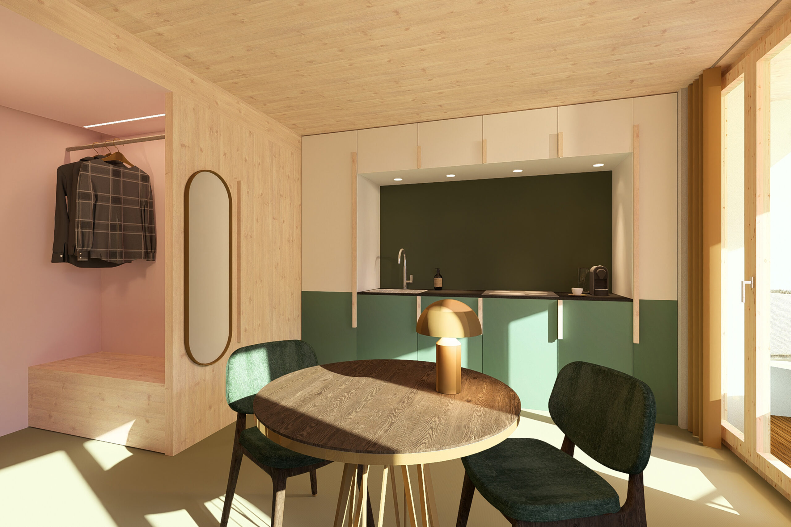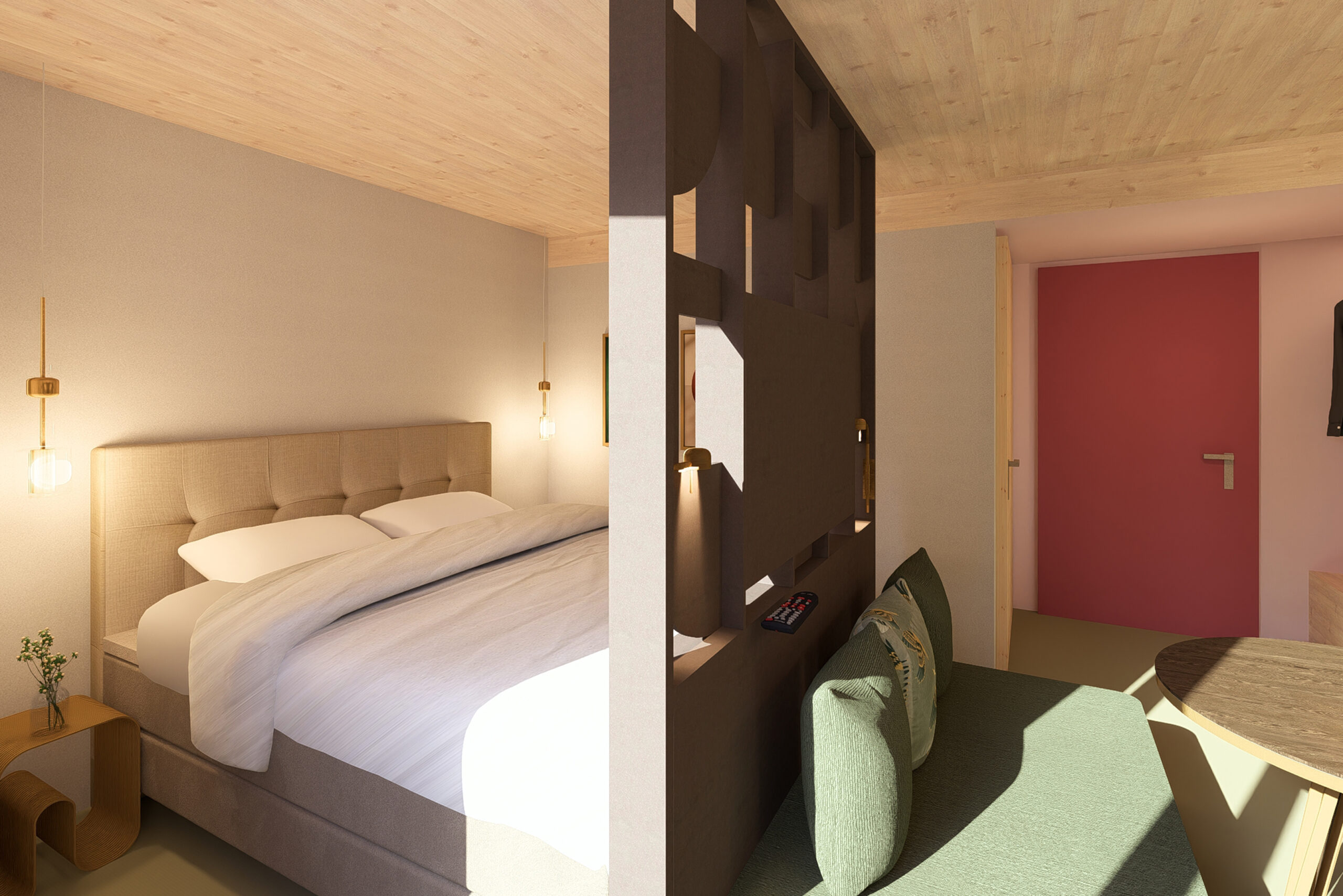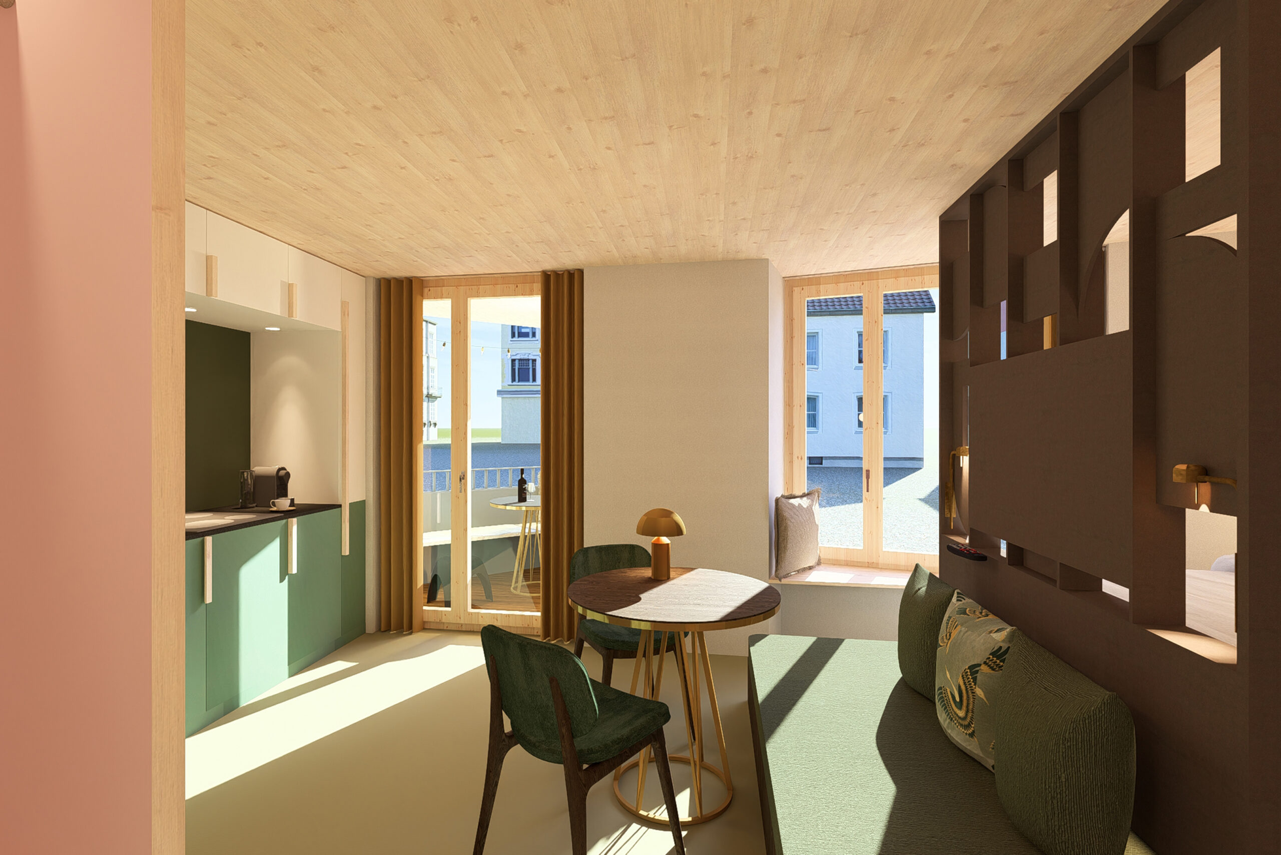 Erleben Sie höchsten Wohnkomfort in unseren neu errichteten Apartments in Kloten: In nur 2 Minuten erreichen Sie den Flughafen Zürich – ideal für Geschäftsreisende und Vielflieger. Jedes Apartment überzeugt mit zeitgemäßem Design aus hellem Holz, hochwertigen Stoffen und dezenten Farbakzenten. Zur Ausstattung gehört eine offene Küchenzeile (Kühlschrank, Kochfeld, Kaffeemaschine), ein komfortables Bett, ein praktisches Schlafsofa sowie ein privater Balkon mit gemütlicher Sitzecke.